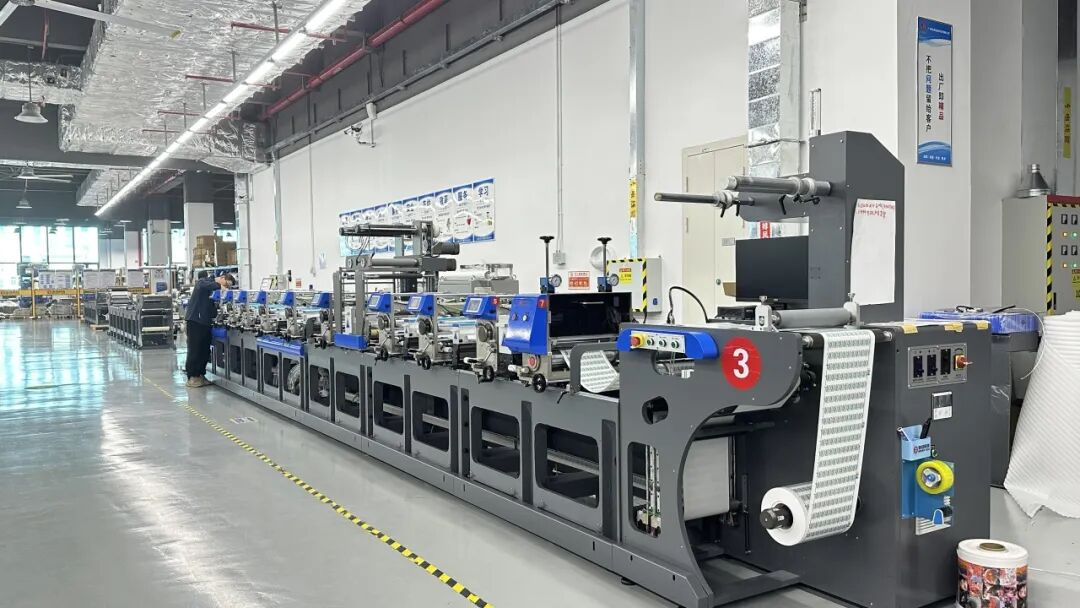 市场给出了积极的反馈结果:“此时此刻来讲,我们这款设备在东南亚已经卖出了超过50台了”,陈实带领记者参观了车间中两台即将发往印度尼西亚的设备,“印尼市场对柔印的接受度很高。这是我们最长的设备,能做到14个色组,集成了冷烫、圆刀等多种工艺。”