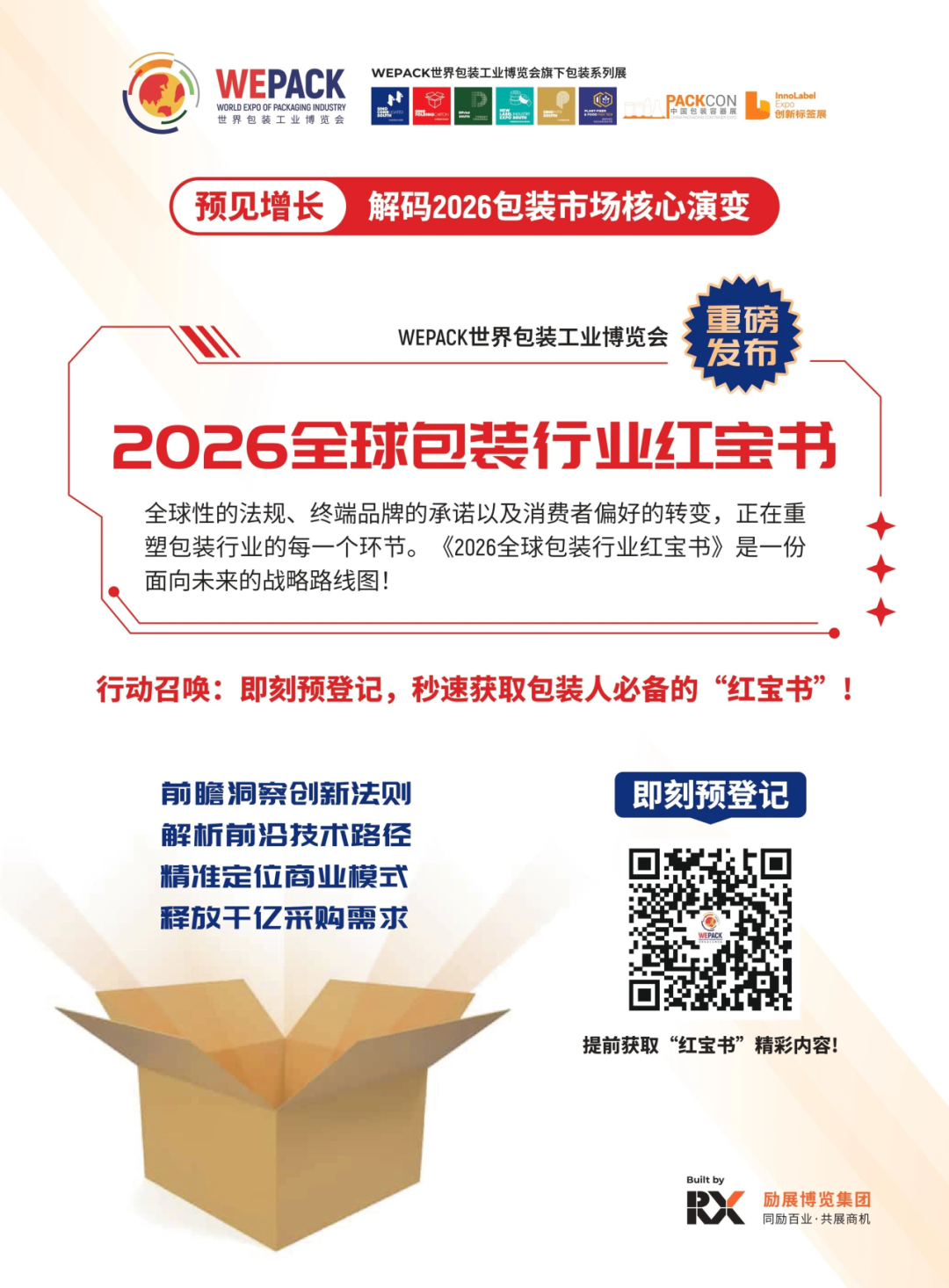 2026年4月15日至17日,深圳国际会展中心(宝安),WEPACK 2026世界包装工业博览会诚邀全球包装行业同仁共聚一堂。在这里,您将见证技术的迭代、洞察市场的变迁、对接全球的资源,更将预见未来三年的产业格局。