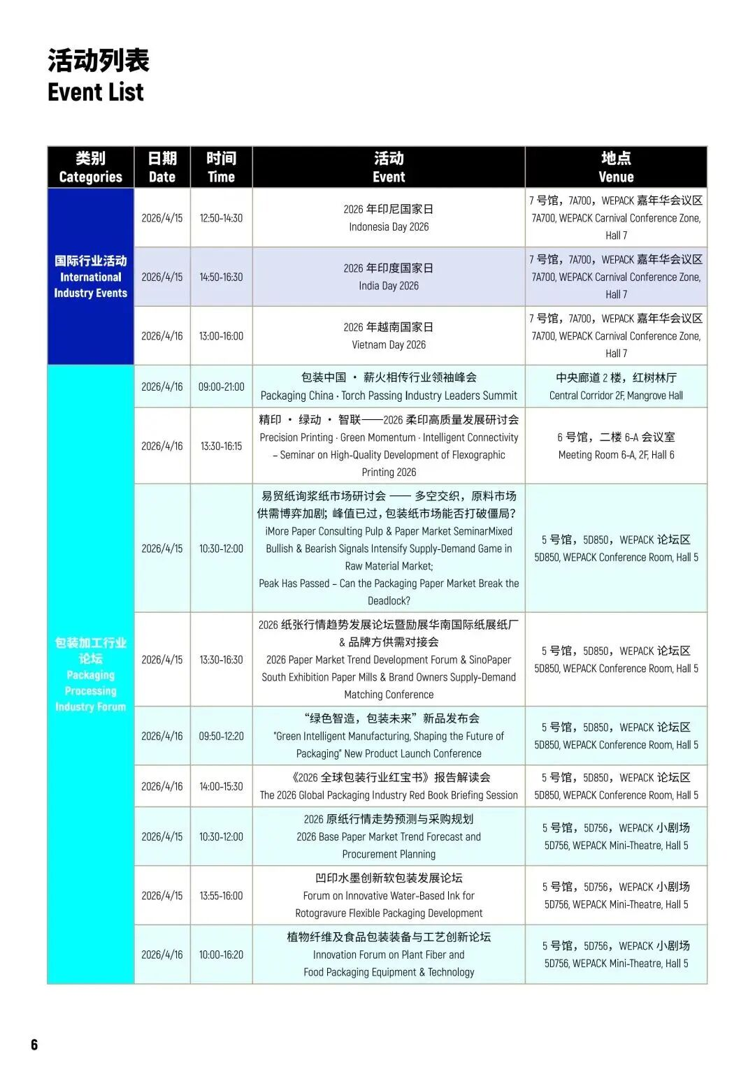 为助力中国企业全球化布局,WEPACK 2026特别推出 “绿色包装产业链出海投资服务展区” ,并设立越南、印尼主宾国展区,打造沉浸式国别体验。