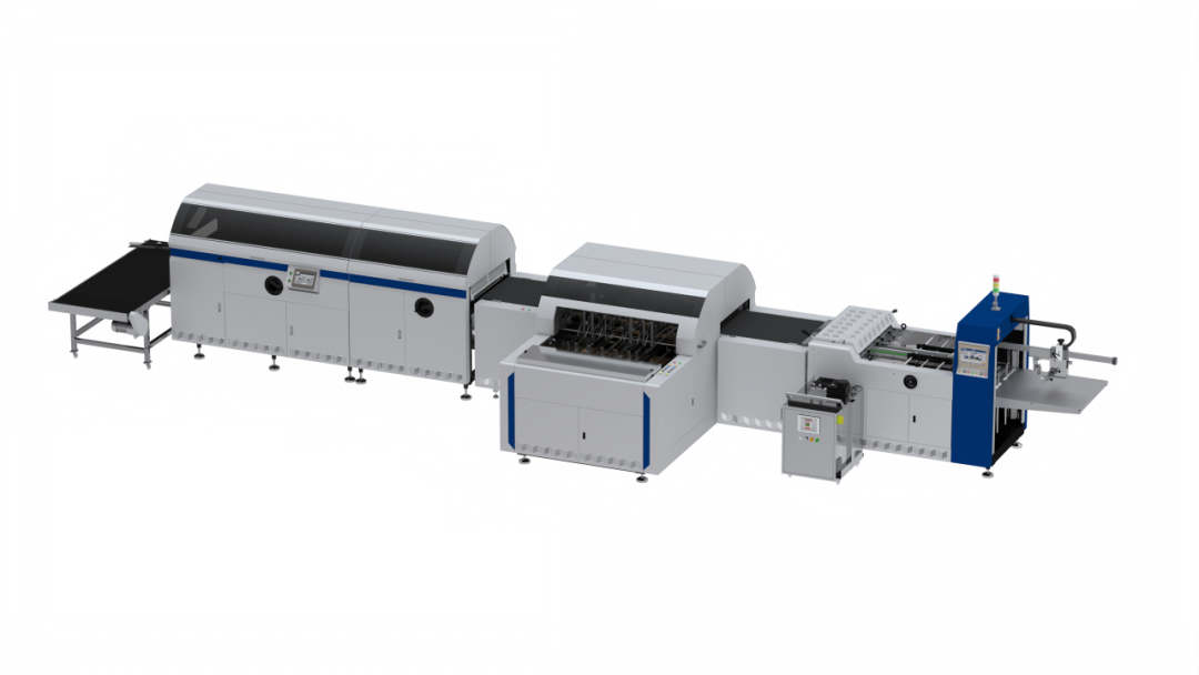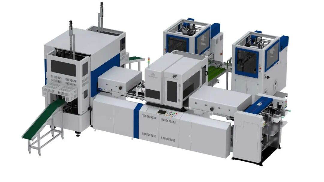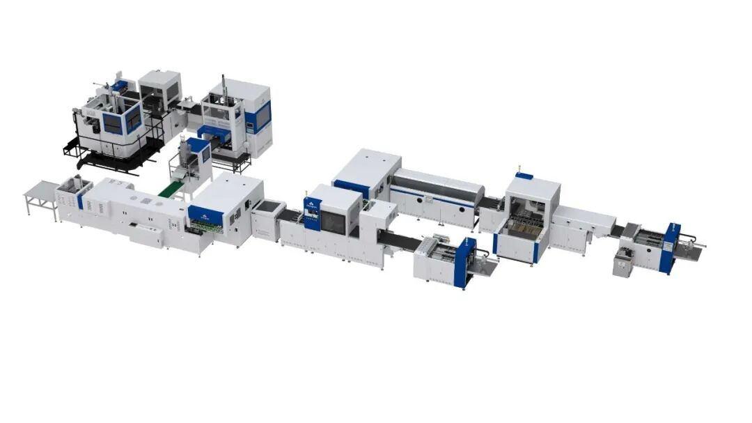 实现从平张到成型盒的一站式生产,一次性完成皮壳生产、内贴在线贴片、内盒生产、自动组装、自动盖盒。整线系统集成,操作维护简单,运行稳定高效。每台机器均配备工业物联网数据采集盒,数据可即时上传MES系统,实现智能化管理。适用于烟酒茶精品礼盒、书型盒等高端包装的完整整线解决方案。