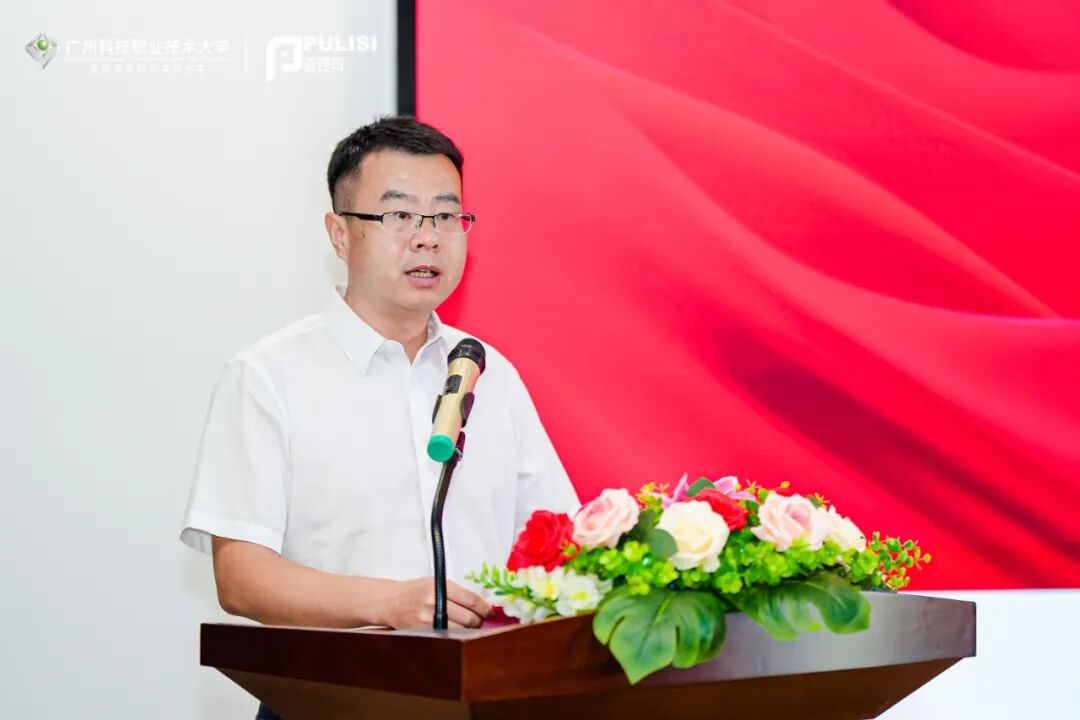活动现场,广州科技职业技术大学副校长周小铁首先致欢迎辞。他表示,“普理司数字印刷产业学院”的成立既是学校深化产教融合、精准对接数字印刷人才需求的重要举措,更是主动承担服务地方经济高质量发展责任的具体体现。学校将全面整合优质教学科研资源,与普理司紧密协同、深度合作,共同探索契合产业需求的人才培养新模式,持续为数字印刷发展输送更多应用型人才,为产业升级注入坚实动力。