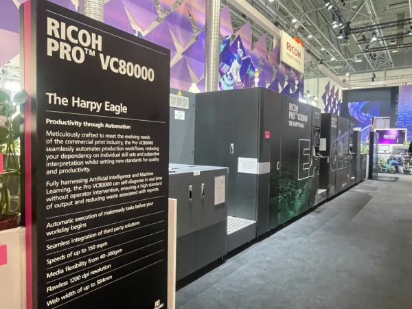 以“变革”为主题,理光在本届德鲁巴上带来了大量新技术展示,其中包括全球首次亮相的双面水性B2单张纸高速喷墨印刷系统RICOH Pro Z75、旗舰连续纸高速喷墨印刷系统Pro VC80000新品首次展出、以及理光生产型数字印刷系统以及理光核心喷头技术。其中,全球首次亮相的全新一代连续纸高速喷墨印刷系统RICOH Pro VC80000 高度集成人工智能技术、新一代理光打印头以及印后设备,为商业、书籍和直邮(Direct Mail)印刷带来了重大突破,它不仅确保了连续的高打印质量,还显著提升了生产效率。