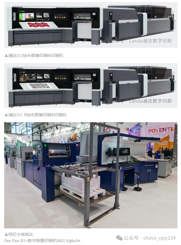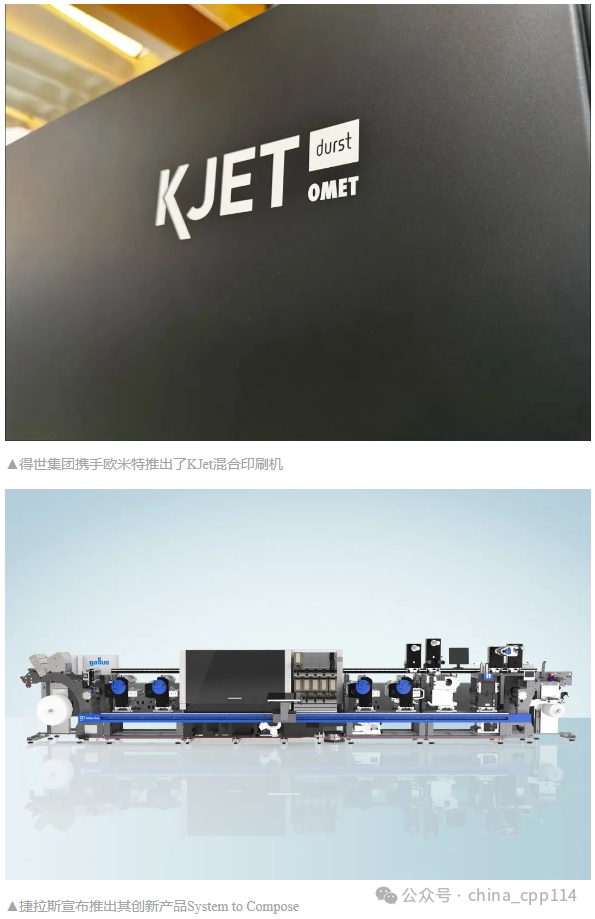 其他领域的印刷设备制造商也纷纷推出新的数字与喷墨方面的设备。标签领域的得世集团携手欧米特推出了KJet混合印刷机,以用户为中心的设计和极短的纸卷路径,为操作人员提供了一个高效且无缝的工作环境,同时减少了材料浪费和准备时间,充分展现了数字印刷的潜力;捷拉斯宣布推出其创新产品System to Compose,印刷宽度从原来的340毫米增加到430毫米,通过提升技术兼容性,允许添加、移除或更换附加单元,激励印刷商创造独一无二的印刷作品。印后包装领域的长荣集团带来的Mastermatrix 106 CSB全清废模切机代表了其高速模切技术方面的创新成就,其在9000S/H小时速度下实现精准、稳定的全清废生产,全新快速换版系统,对于多样化订单更为高效;博斯特集团宣布推出DIGITAL MASTER 55,集成了印刷、装饰、质量控制和模切等多个工序,其生产速度可达每分钟100米,不仅保证了更快的交付速度,还实现了更优的总拥有成本(TCO);高宝全球首发的速度高达16000张/小时的轮转模切机CutPRO X 106,为市场提供了更多选择……