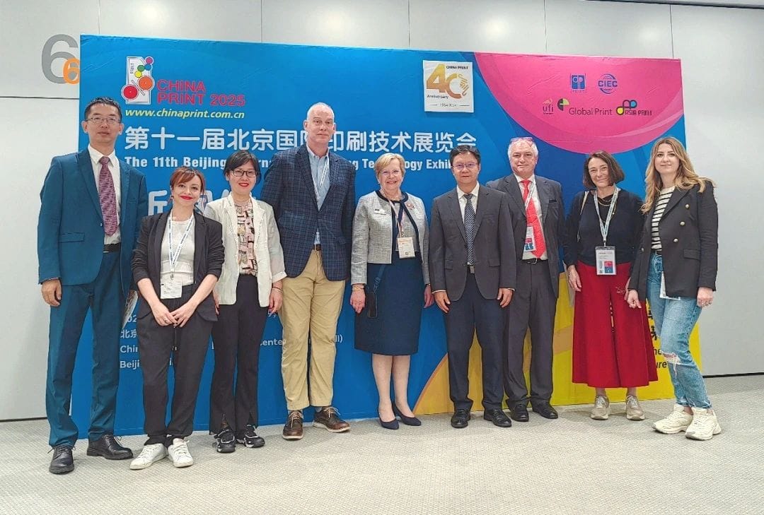 CHINA PRINT 2025推广小组现场还拜会了德国机械设备制造业联合会(VDMA)主席Karl Haeusgen先生、VDMA印刷及纸技术协会总裁Thomas Schiemann先生、日本印刷产业机械工业会专务理事里见和南先生、巴西印刷行业协会主席Juliao Gauna先生,英国印刷产业联盟CEO Bettine Pellant女生、意大利印刷、纸张及纸加工机械制造协会总经理Enrico Barboglio先生、美国印刷技术协会总裁Thayer Long先生、意大利印刷行业供应商秘书长 Valentina Carnevali女士共同参加了环球印刷联盟餐叙,就海外展商和观众的组织事宜与各海外印协进行了沟通,并达成合作意向。