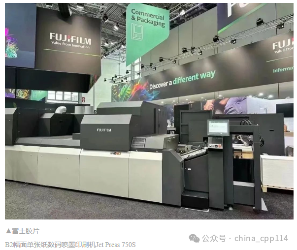 通过走访发现,本届德鲁巴展会上,众多展商推出了大幅面数字喷墨印刷设备。澜达推出新一代B1幅面的S11和S11P纳米图像印刷机,全新型号的印刷机将提供极高的生产多功能性,同时达到11,200 sph的印刷速度;柯尼卡美能达重磅亮相的One Pass B1+数字喷墨印刷机MGI AlphaJet,创新地将四色印刷、干燥、局部UV和烫金等独立工序整合成一体化的生产流程;惠普推出全新Indigo 120K HD数字印刷机,速度高达6000张/小时(B2),每月可印刷超过两百万张(B2);佳能推出的新型B2+喷墨印刷机varioPress iV单面印刷速度为8,700sph,双面印刷速度为4,350sph; 富士胶片带来的B2幅面单张纸数码喷墨印刷机Jet Press 750S,采用旗下SAMBA喷头,现场连线UV光油,呈现的包装应用解决方案吸引了众多专业观众……