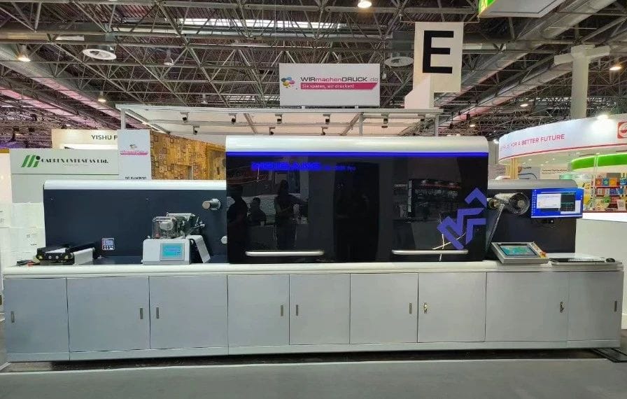2023年,炜冈科技重磅推出自主研发生产制造的三款数码印刷设备——ZJR S350 PRO系列数码柔印组合印刷机、WG S350 PRO系列数码印刷机、WG S230雅致系列数码标签机,标志着公司正式进军数码印刷领域。尤其是ZJR S350 PRO系列数字柔印组合印刷机,设备配置了柔印和数字印刷单元,既可以满足用户的长单印刷需求,也可以满足用户个性化、定制化的短单印刷需求,给标签印刷企业带来更多创新设计的空间。