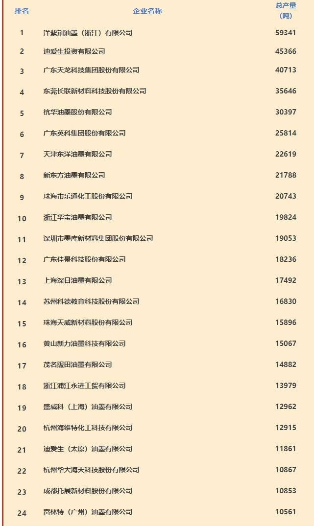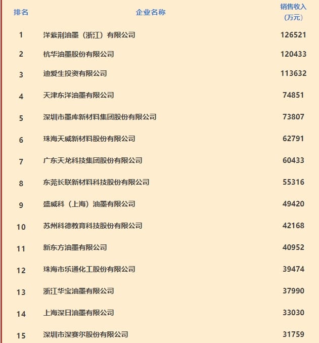 2024年度中国油墨行业企业经营状况榜单揭晓