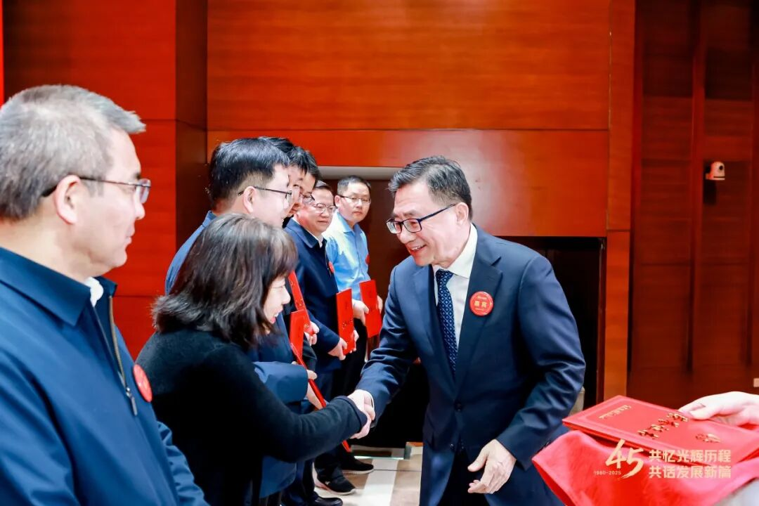 韬奋基金会理事长刘伯根作为兄弟协会代表宣读贺信,高度赞扬中国印协45年来坚守服务印刷事业的初心使命,在传承印刷文明、推动技术革新、促进行业合作、培育专业人才、规范行业标准等方面付出的不懈努力和取得的瞩目成就。贺信指出,韬奋基金会与中国印协在推动文化传播、促进出版印刷事业发展等方面有着共同使命,期待双方进一步加强合作,共同推动我国印刷出版事业高质量发展,为推进社会主义文化强国建设贡献力量。