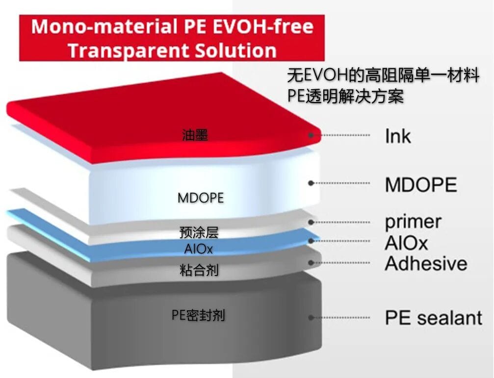 EVOH是一种具有良好阻隔性能的聚合物,但挤出EVOH层通常相当厚,这使得符合现代关于包装中非单一材料数量的要求更具挑战性。此外,由于醋酸乙烯单体(VAM)短缺,EVOH目前供不应求。oneBARRIER正在为高阻隔全单材料PE生产不含EVOH的解决方案,减少非单一材料的含量,从而最大限度地增加PE用量,并满足单一材料的严格定义。通过这种方式,博斯特提供了一种可回收利用且经济的包装结构,同时确保出色的阻隔性能。