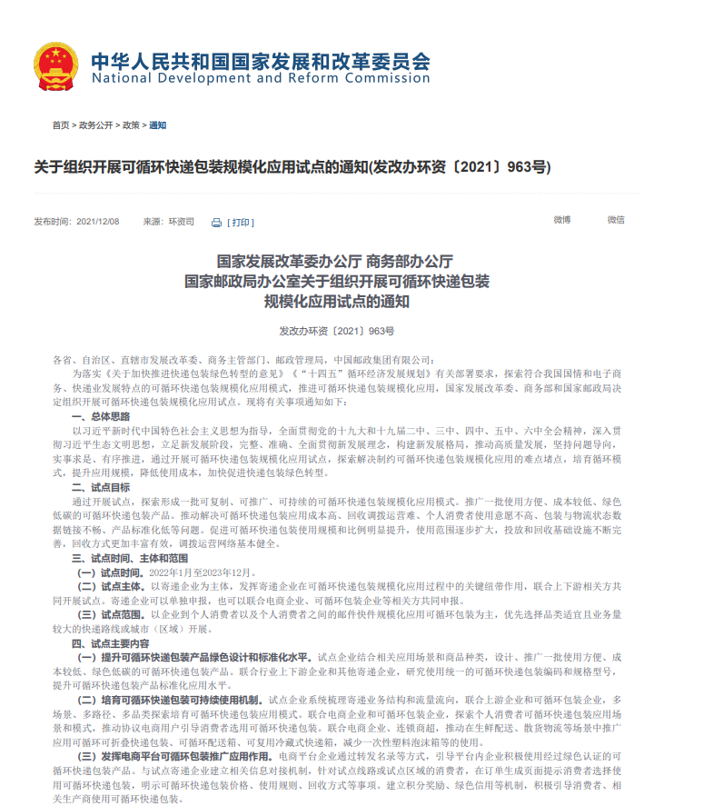 近年来,国家市场监管总局、邮政局、生态环境部等部门联合推动的《绿色包装评估指南》《快递包装循环利用试点实施方案》已明确: