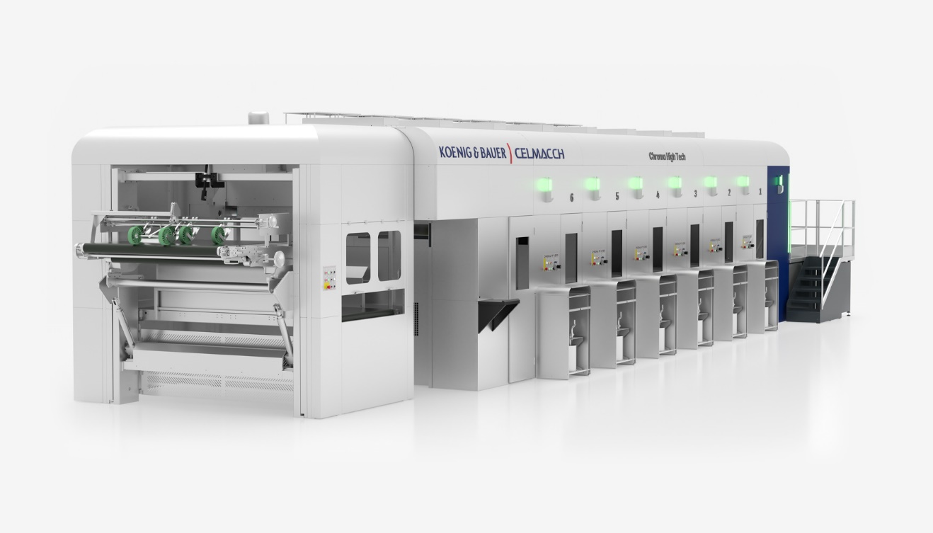 科尼希&鲍尔的2S(两侧)技术已融入到了Celmacch的Chroma High Tech系列和Chroma Smart系列印刷机和模切机的所有产品中。在去年3月推出时,科尼希&鲍尔Celmacch首席执行官卢卡·塞洛蒂评论道,双面印刷“彻底改变了纸板行业,特别是瓦楞包装,对于纸箱工厂来说, 能够以低成本快速印刷,甚至在纸箱内部也能印刷,在拆箱过程中获得所谓的“哇效果”。