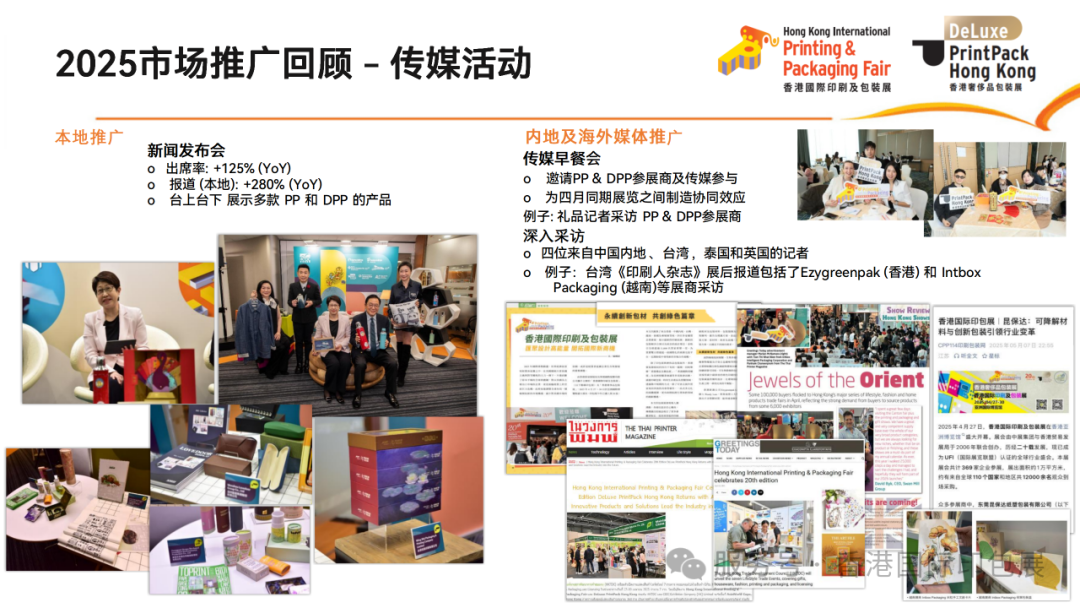 邀请中国内地、台湾、泰国、英国等多地记者参与展会报道,展后获台湾《印刷人杂志》等专业媒体专题报道;新闻发布会出席率同比增长125%,本地报道量同比增长280%。