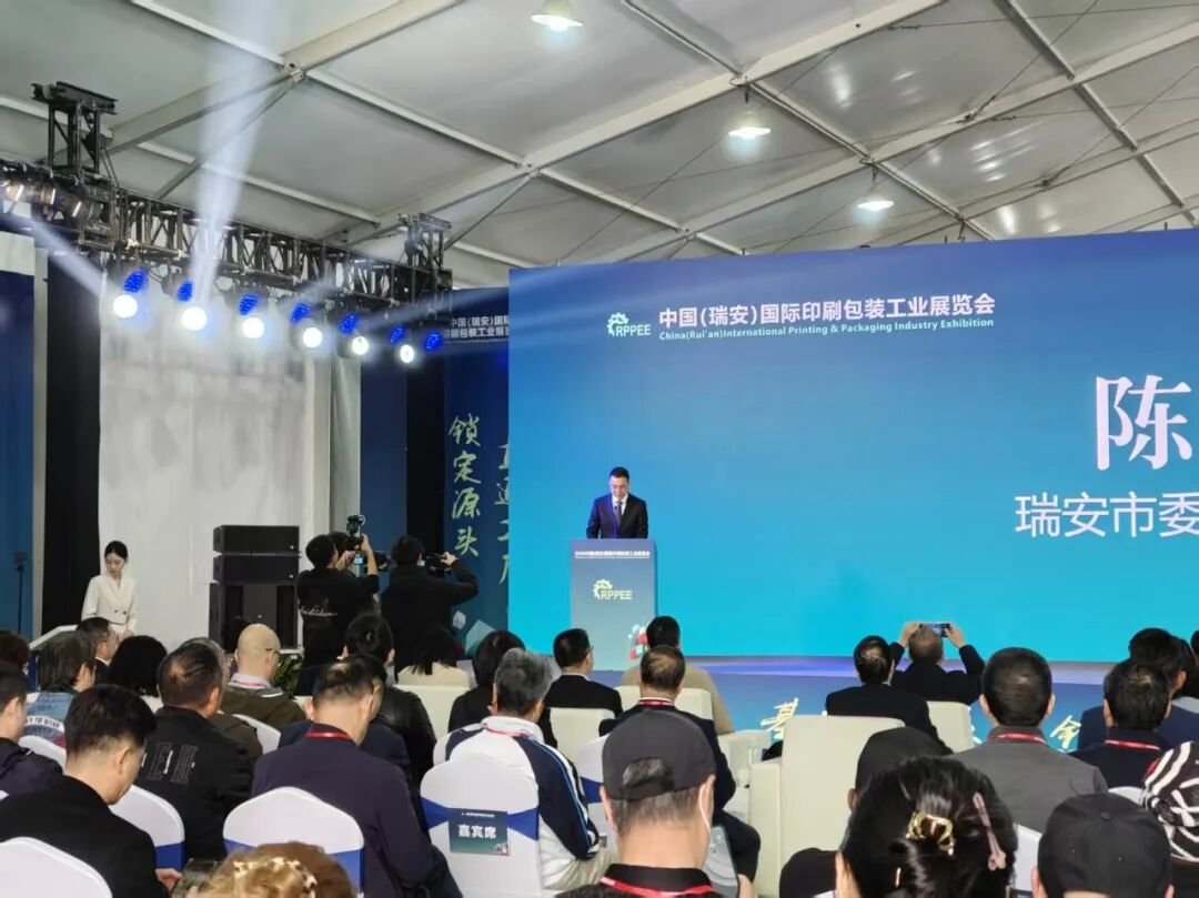 开幕式上,瑞安市委宣传部、统战部、经信局、市监局、工商联、税务局、投促中心及各区乡镇街道等多部门负责人集体出席,市委副书记李剑锋亲临致辞。地方政府将此次展会视为推动印包产业链升级的重要抓手,从资源对接到政策保障,给予全方位倾斜。这种高位推动,让首届展会从一开始就站在了高规格的起点上。