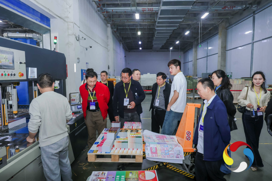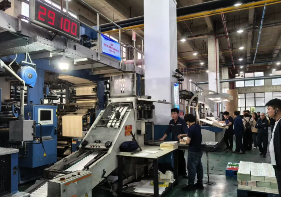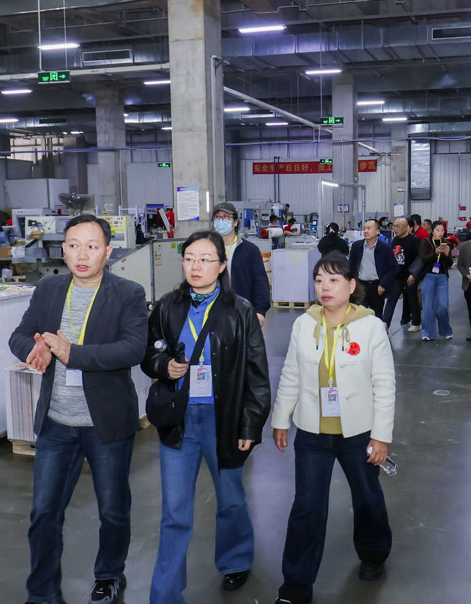 在印刷车间,代表们现场观摩了小森对开四色胶印机、小森对开八色胶印机等设备的实际印刷作业,自动化系统与精密机械的完美协作引起代表们的浓厚兴趣。在印后加工车间,代表们考察了全自动覆膜机、烫金机、精密达胶包机、全自动模切机等先进设备的高效运转,企业还可实现自动封装、胶粘等配套服务,展现出成套化、规模化的印后加工能力。