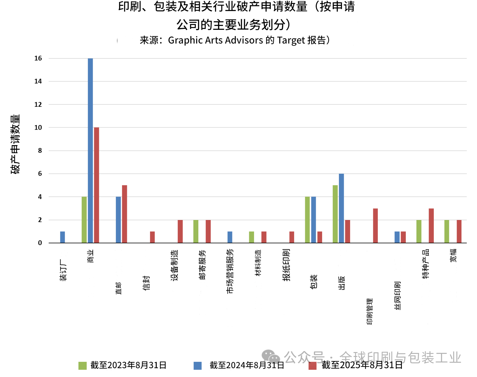 商业印刷在破产数上再次居于首位;其中5起来自直邮。但年度最受关注破产无疑是澜达数字印刷公司。该公司全球装机50d多台、单机约350万美元,累计消耗投资超13亿美元后申请破产。对已装机用户而言,寻找买家接盘并持续供保是当务之急。最新公告显示已完成出售交易。