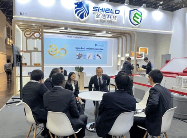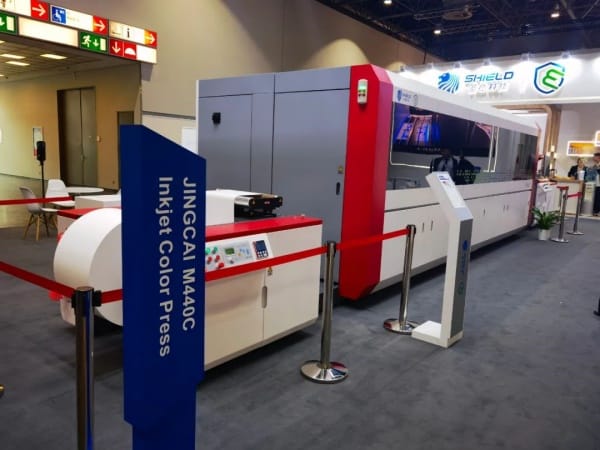 展会现场,圣德精彩M440C彩色高速喷墨印刷机成为焦点,其卓越的性能和独特的设计吸引了众多观众驻足观看,并纷纷表达出对这款设备的浓厚兴趣和好奇。