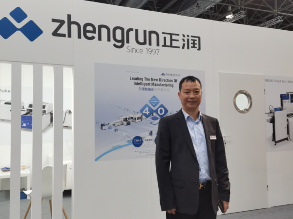 展会现场,正润机械总经理蔡希富先生接受了中华印刷包装网特约记者张子锴的采访,他表示:“正润机械经过这些年不断更新迭代,应该说,技术和工艺都已经远超国外市场的同等技术了。我们正润的产品比较多元化,整套设备比较齐全。这次带来的设备也是比较高端,我们对这块市场也比较期待,希望能与更多客户进行近距离沟通,更深刻地了解全球市场的走向。”
