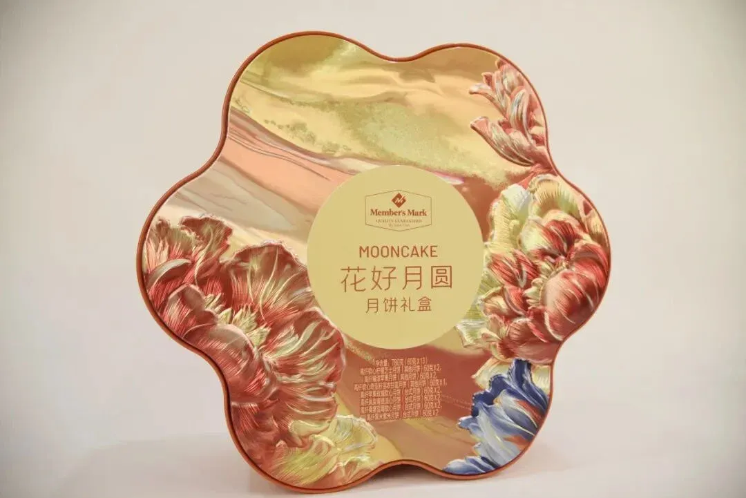 山姆“花好月圆”礼盒取“月满金菊盛,人间共清欢”之意,盒面采用浮雕工艺,缀以细腻的菊花肌理,纹路光泽变换间尽显月色团圆。