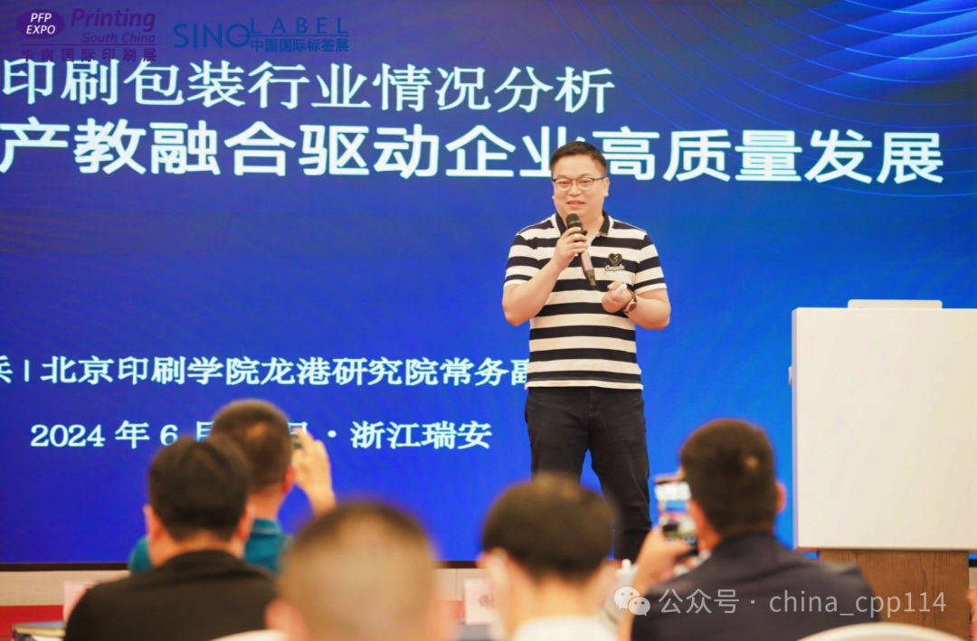 作为最后一位演讲嘉宾,北京印刷学院龙港研究院院长吕勇兵先生现场发表主题演讲——《2024年印刷包装行业情况分析/产教融合驱动企业高质量发展》。