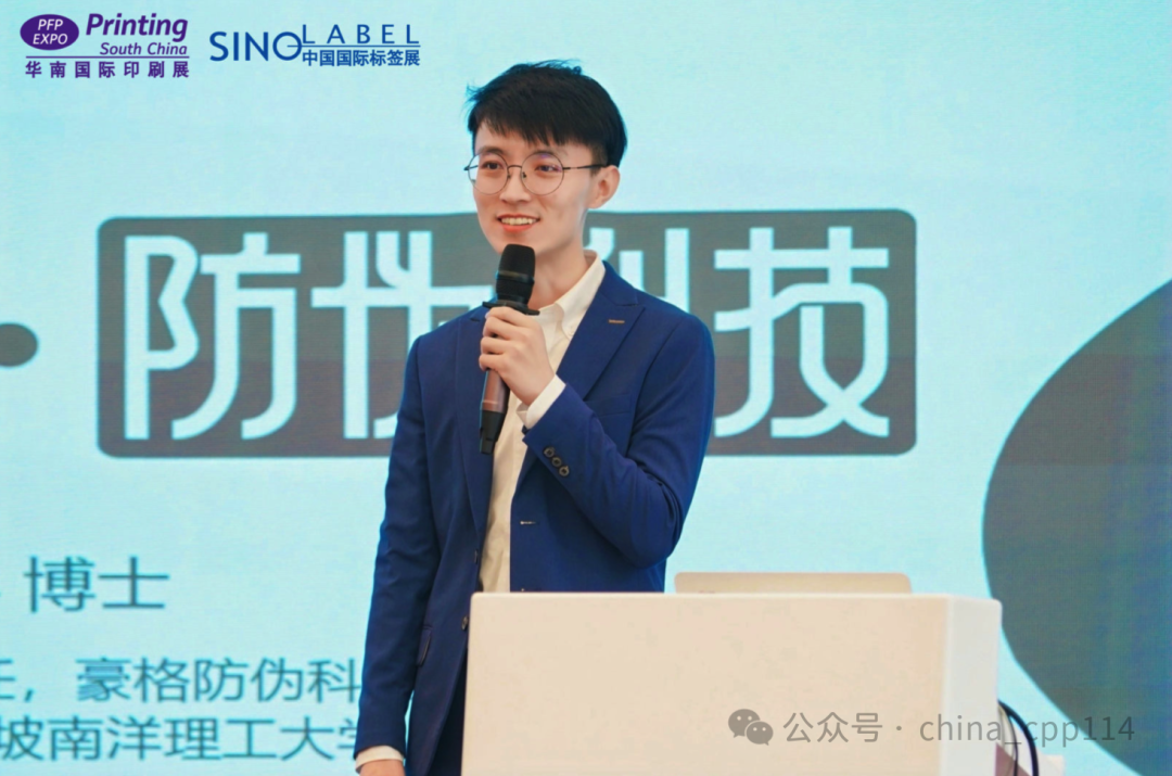 活动特邀温州豪格防伪科技有限公司研发部主任景琳博士带来主题分享,从新质生产力出发,他着重分享了豪格防伪在数字防伪技术方面的应用方案,多维诠释了科技赋能行业的实践应用。为与会者带来了宝贵的价值分享,引发现场赞叹与掌声。