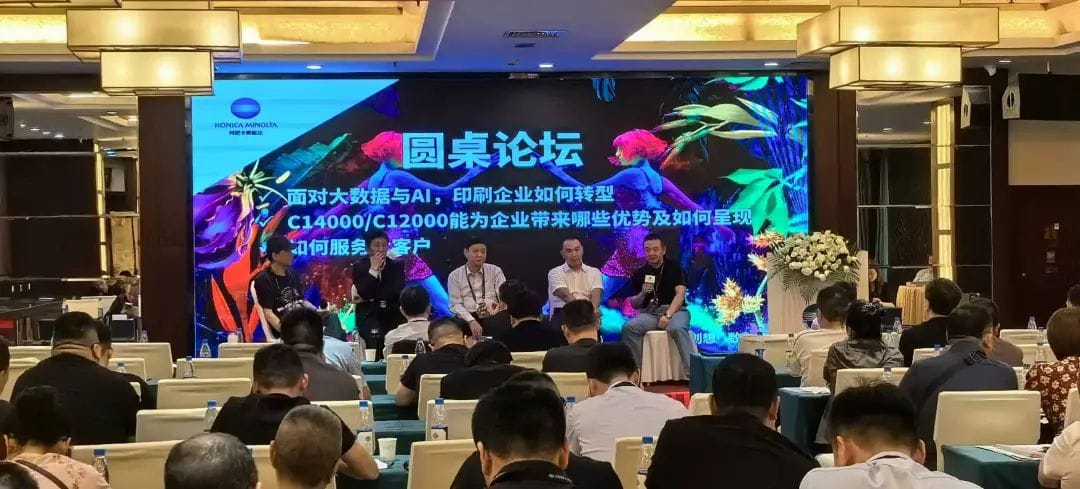 随后,围绕“面对大数据与AI技术、企业如何成功转型、如何服务好大客户以及AccurioPress C14000/C12000能为企业带来哪些优势及如何呈现”等话题,在祁欣的主持下,上海数字印刷行业协会会长薛平与柯尼卡美能达、苏州爱欧图文、中彩印刷等企业嘉宾进行了深入探讨,为在座嘉宾带来了一场精彩的行业对话。