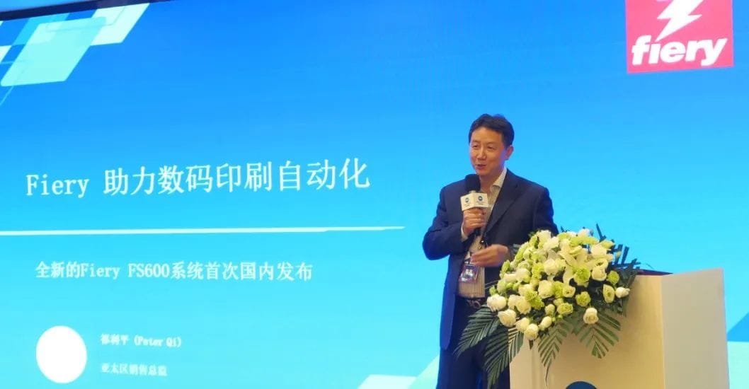 下半场精彩继续。来自Fiery公司的总经理祁利平先生围绕“为什么要做自动化和智能化”,发表主题演讲——《助力数码印刷自动化》,并首次在国内发布全新的Fiery FS600系统。据介绍,Fiery2023年从efi独立,成为一家独立的公司,目前是efi的兄弟公司,由同一股东Siris Capital集团所有。