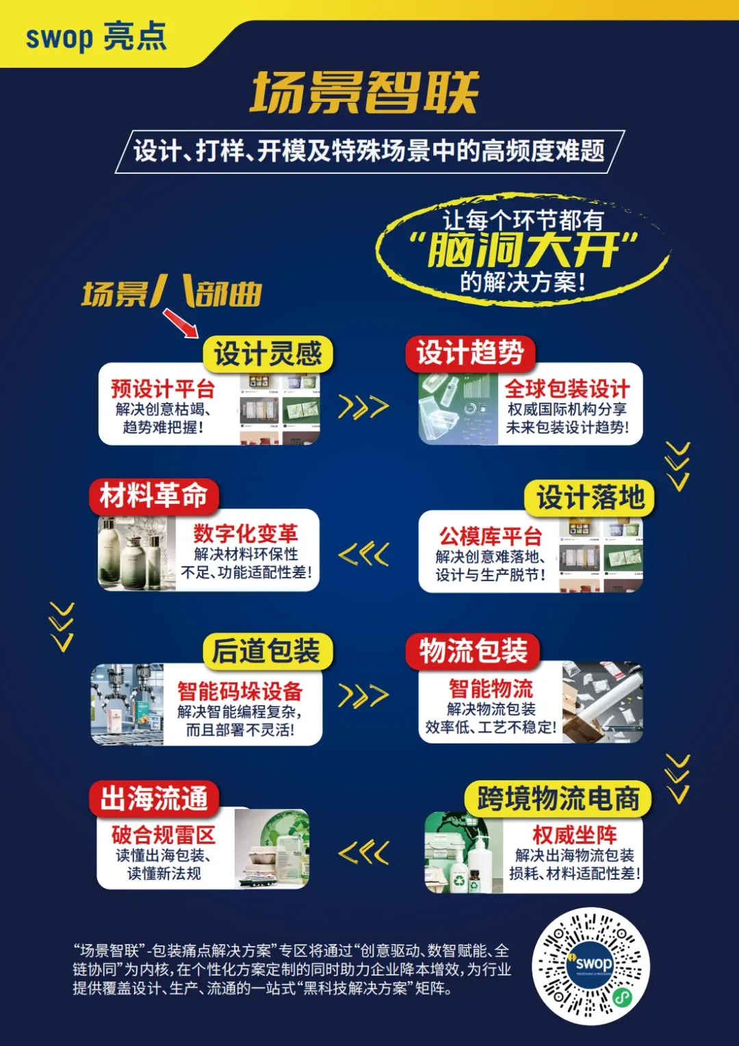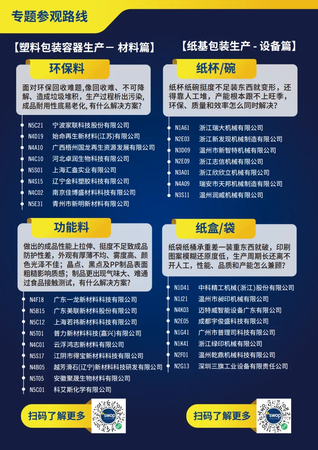 为解决“展馆太大,无从看起”的烦恼,swop 2025针对包装人为您定制8大板块专题痛点解决方案路线,覆盖塑料包装容器设备、纸基包装设备、前/后道设备、包装制品、快递物流电商等全领域。