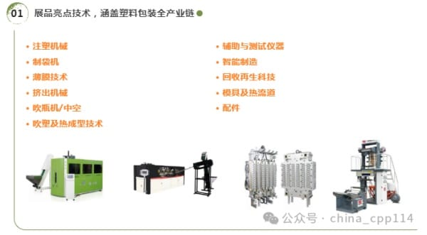 “塑料包装容器生产设备专区”将汇聚先进的注塑机、吹瓶机、中空吹塑机、成型机、制袋机、吹膜机、挤出机等设备,覆盖从小型容器到大型包装的各个领域。这一专区将提供全方位的解决方案,满足不同客户的生产需求和技术要求,从而帮助客户实现生产效率的提升和成本的降低。