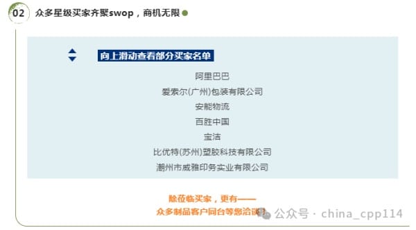 swop展会现场将邀请展商企业与终端用户一对一深入交流,依托强大的全球观众数据支持,以及持续不断的买家开发工作,帮助买家与供应商完成供需对接,成为包装行业最受关注的供需对接平台之一。